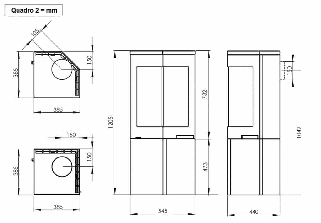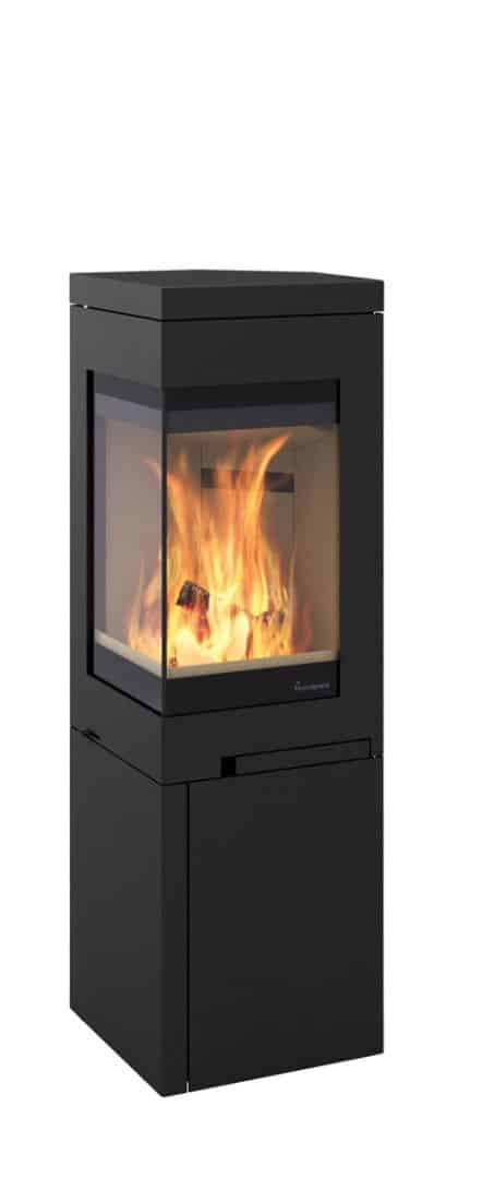 Deze  houtkachel kan zowel in de hoek als op de vlakke wand geplaatst worden.