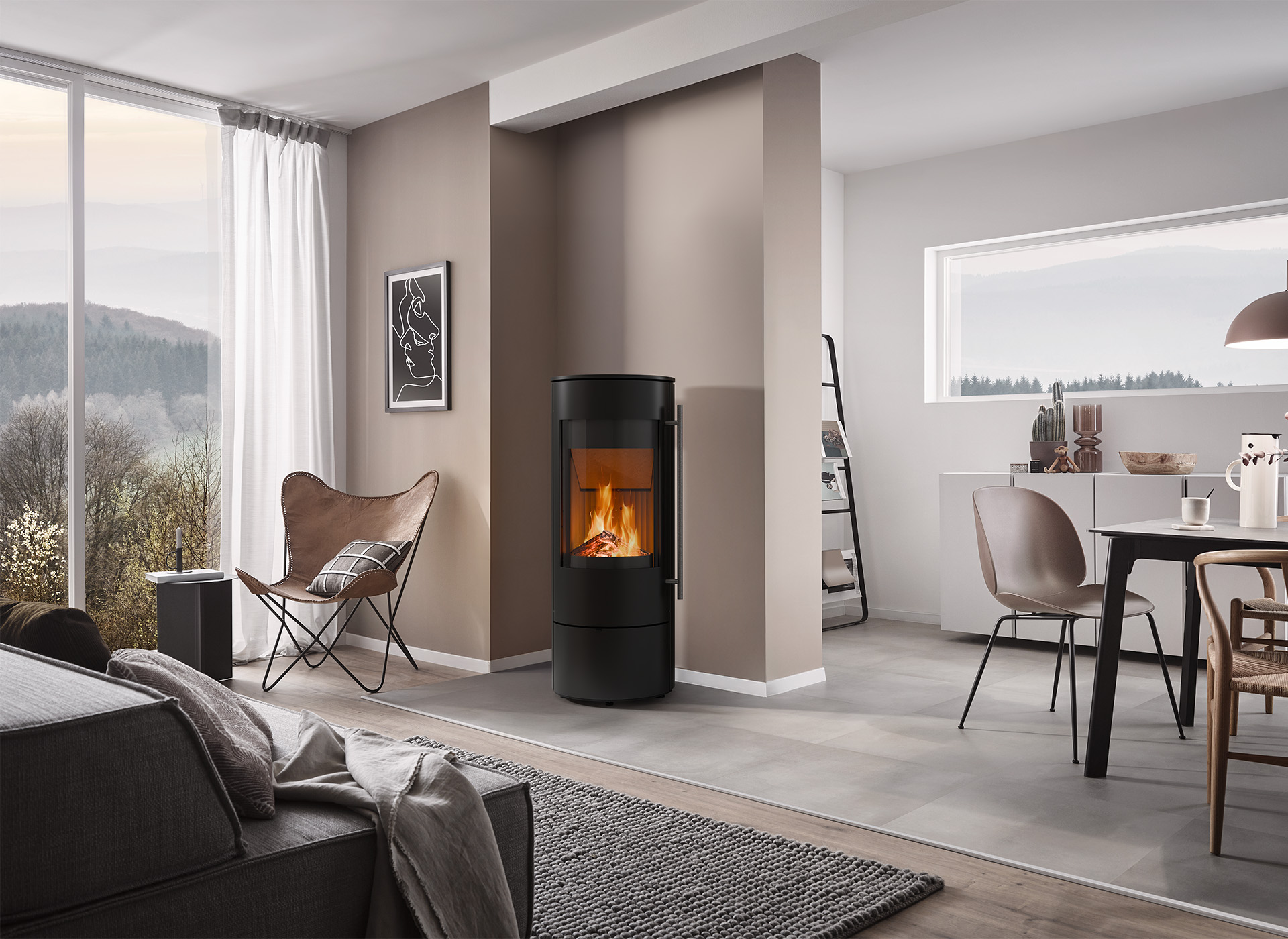 De Olsberg Alor is een slanke, moderne houtkachel met een elegant rond design dat warmte en stijl perfect combineert. Met een vermogen van 2–6 kW is hij ideaal voor goed geïsoleerde woningen of kleinere ruimtes, waar hij snel en doelgericht warmte biedt. Dankzij de panoramische ruit met het bewezen schone ruit-systeem geniet u van een helder zicht op het vlammenspel. Met zijn tijdloze design en hoogwaardige afwerking is de Olsberg Alor een premium keuze voor wie comfort en verfijning moeiteloos wil combineren.